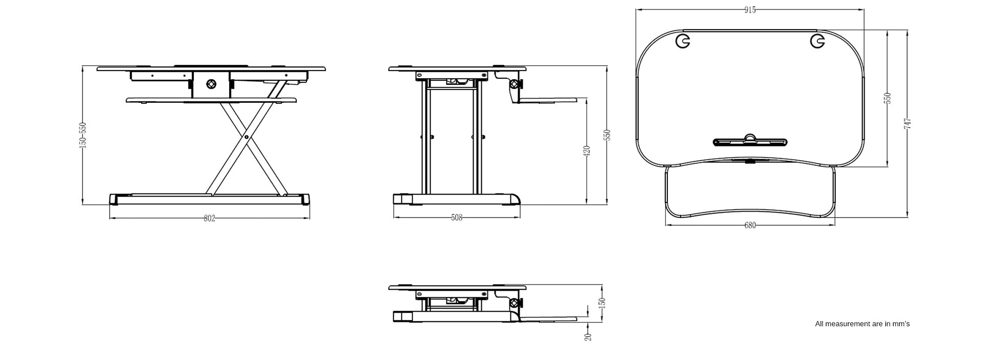 Designed with productivity in mind, the DeskRite 100E boasts a two-tier layout. The upper tier offers ample space for laptops, monitors, or a dual-monitor setup, catering to diverse professional needs. The lower tier, spacious enough for a full-sized keyboard, mouse, and other accessories, maintains ergonomic alignment between your keyboard and monitors.