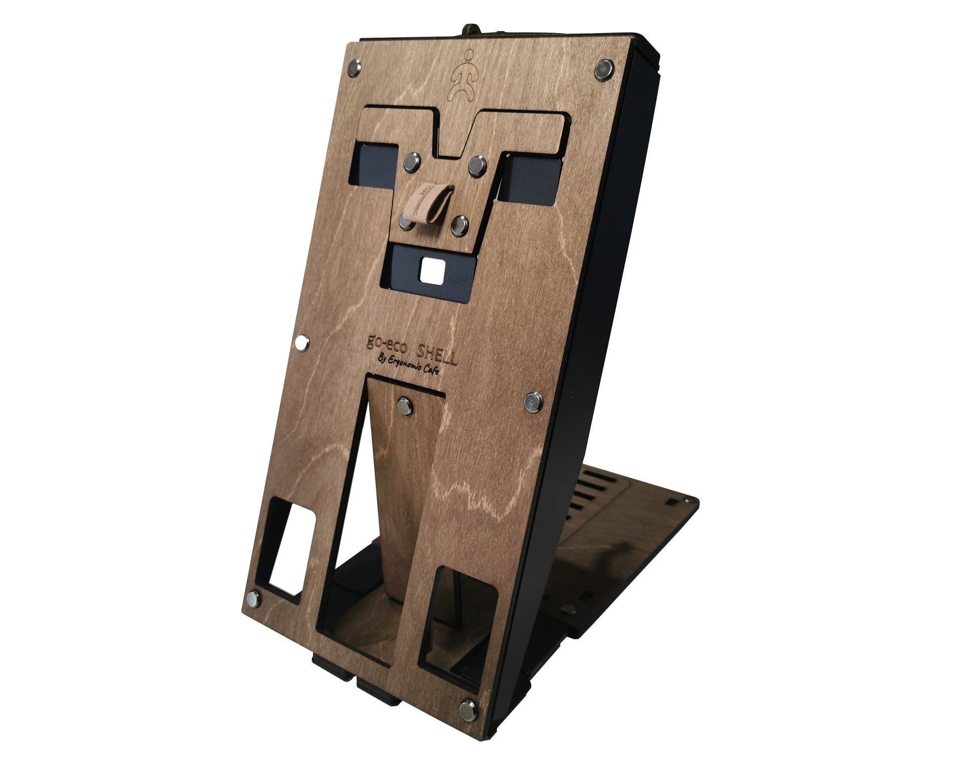 Suitable for all portable iPad models, Microsoft Surface, Galaxy etc and other tablets up to 14mm thick. Unlike other stands, SHELL supports the tablets screen in an upright position to reduce the glare and reflected light.